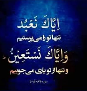 ایّاکَ نَعْبُدُ وَ اِیّاکَ نَسْتَعین تنها تو را میپرستم یا تنها از تو یاری میجویم.